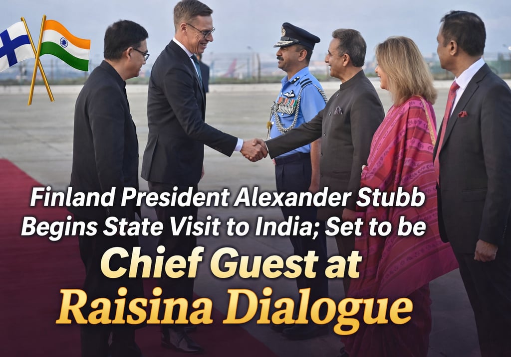 Finland President Alexander Stubb Begins State Visit to India; Set to be Chief Guest at Raisina Dialogue