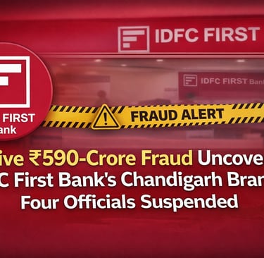 A major financial irregularity has rocked private banking as IDFC First Bank disclosed a ₹590-crore fraud involving accounts linked to the Haryana government at its Chandigarh branch. The lender has placed four officials under suspension and filed a police complaint as authorities and investigators probe the case.