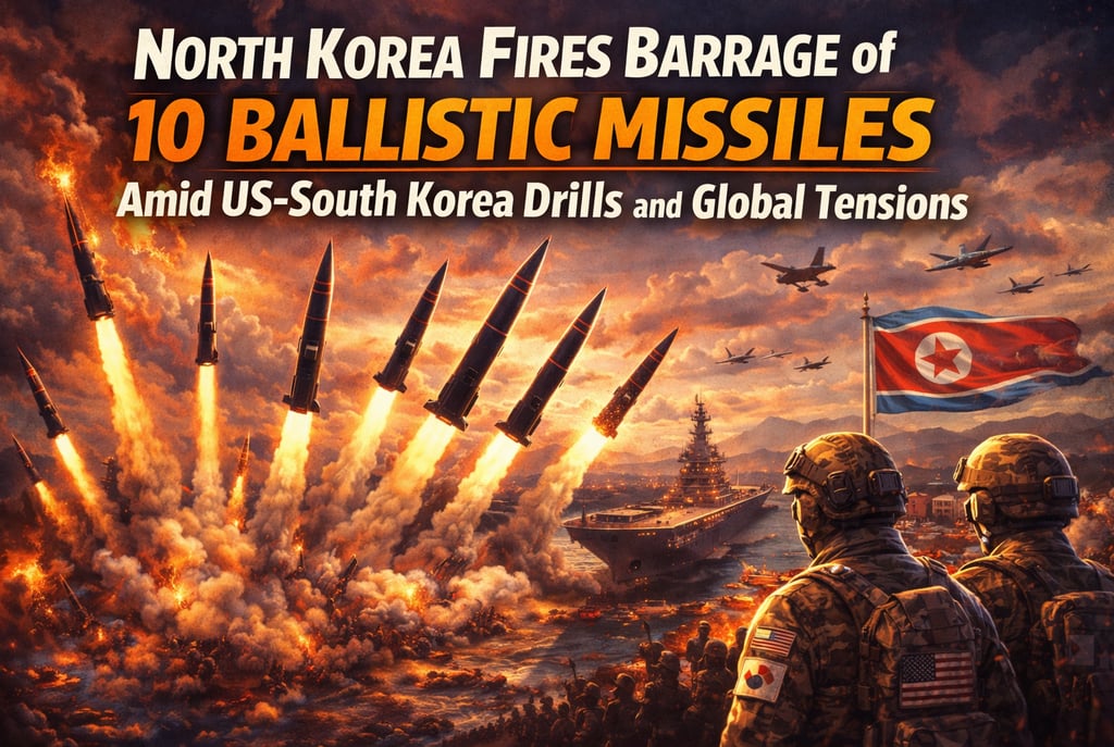 North Korea Fires Barrage of 10 Ballistic Missiles Amid US-South Korea Drills and Global Tensions